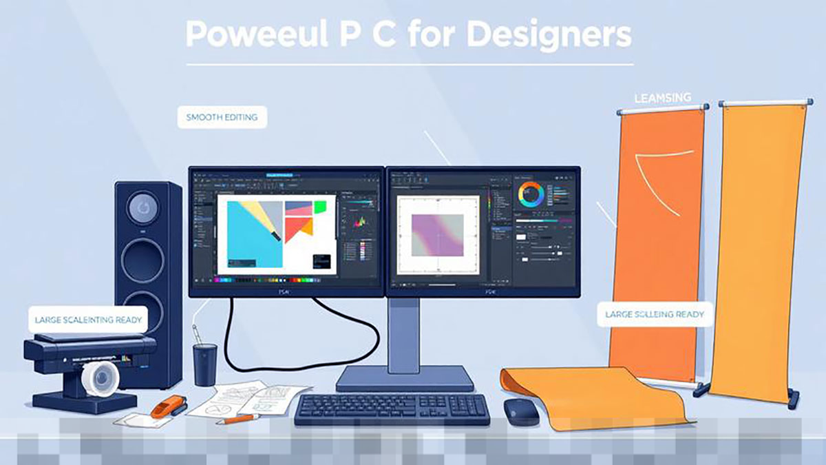 Menghadapi tantangan dalam industri percetakan besar, terutama ketika berurusan dengan desain banner dan spanduk, pilihan komputer yang tepat menjadi sangat krusial. Proses pengeditan desain tidak hanya membutuhkan ketelitian dan kreativitas, tetapi juga memerlukan performa tinggi agar perangkat lunak desain dapat berfungsi tanpa hambatan. Dengan menggunakan PC yang sesuai, desainer dapat bekerja lebih efisien, menghindari gangguan seperti lag, dan mempercepat proses rendering file yang sering kali berukuran besar dalam produksi percetakan.